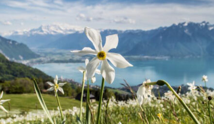 Tagesfahrt mit Wanderung auf dem Narzissenweg mit Geniessen der weissen und berühmten Narzissenfelder.